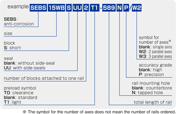 SEBS slide guides are available with a standard preload (blank), light preload (T1), and a positive clearance (T0).